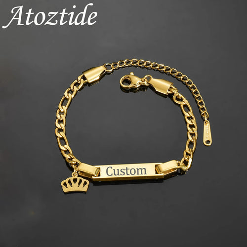Atoztide Personalized Engrave Name Bracelet For Women Mother Kids Stainless Steel Heart Adjustable Figaro Chain Jewelry Gift